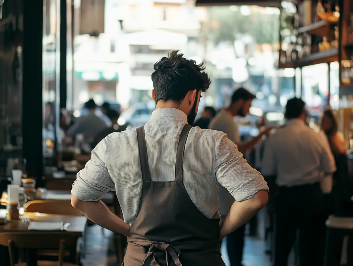 Ο Άντριου περιπλανήθηκε ανάμεσα στα τραπέζια σαν φάντασμα, προσεκτικός και αόρατος. Οι συνάδελφοί του -γρηγορότεροι, πιο δυνατοί, πιο τολμηροί- έπιαναν τραπέζια πριν προλάβει να ανοιγοκλείσει τα μάτια του. “Το επόμενο είναι δικό σου”, είπε η Μαρί, επικεφαλής της βάρδιας, χωρίς να σηκώσει το βλέμμα της από τη μηχανή του εσπρέσο. Ήταν μια σπάνια παραχώρηση.
