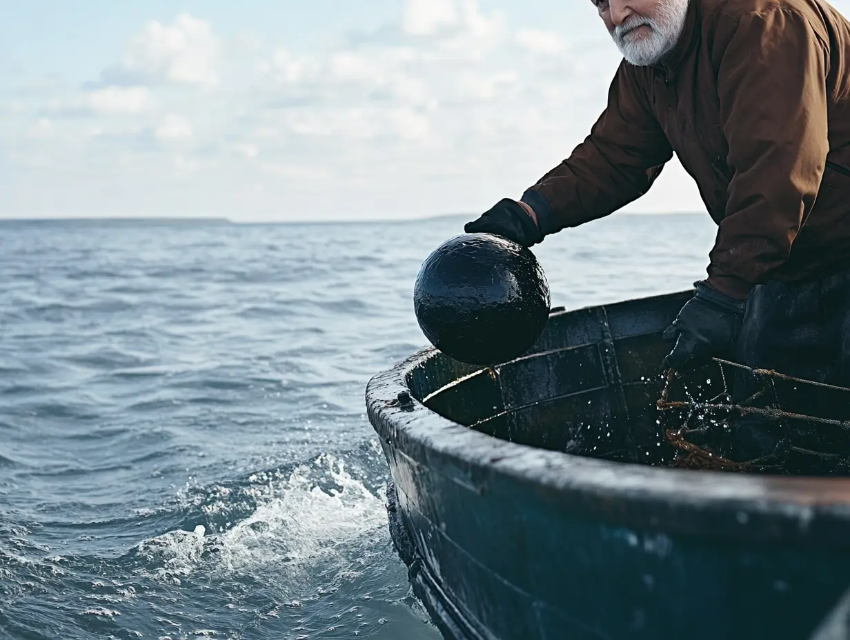 Καθώς το τράβηξε, ακούστηκε ένας απαλός, υγρός ήχος που έσκασε. Το αντικείμενο ξεφούσκωσε ελαφρώς κάτω από την πίεση, και ένα παχύρρευστο, κοκκινόμαυρο υγρό ξεχύθηκε, πιτσιλώντας τα χέρια και τους πήχεις του. Το υγρό πιτσίλισε το κατάστρωμα, στάζοντας σε παχύρρευστες ραβδώσεις στο πλάι του σκάφους.