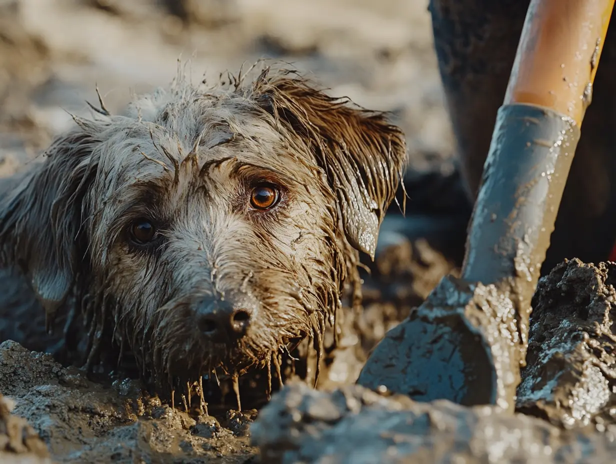 Κάθε κουτάλα αποκάλυπτε όλο και περισσότερο το περίγραμμα του σκύλου: δυνατούς ώμους, χοντρό λαιμό, πλευρά που κινούνταν αχνά κάτω από το ματ τρίχωμα. Η λάσπη κολλούσε στα πάντα σαν κόλλα. Τότε ένας ήχος έσπασε τη σιωπή- ένας αχνός θόρυβος, σύντομος και υψηλός. Η Κλάρα κοίταξε ψηλά. “Το άκουσες αυτό;”