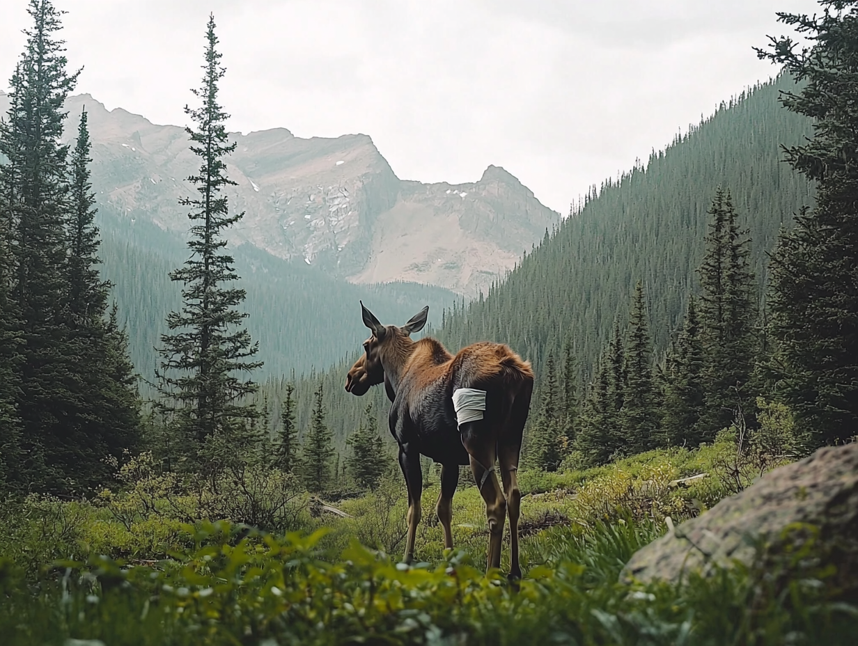 Η άλκη κούτσαινε μπροστά, το σώμα της ταλαντευόταν σε κάθε βήμα, αλλά προχωρούσε αποφασισμένη. Ο Τζέικομπ ακολούθησε προσεκτικά, με τα χέρια του σφιγμένα σε γροθιές. Τα βογκητά πόνου του πλάσματος έκαναν το στήθος του να σφίγγει, αλλά δεν τόλμησε να μιλήσει.