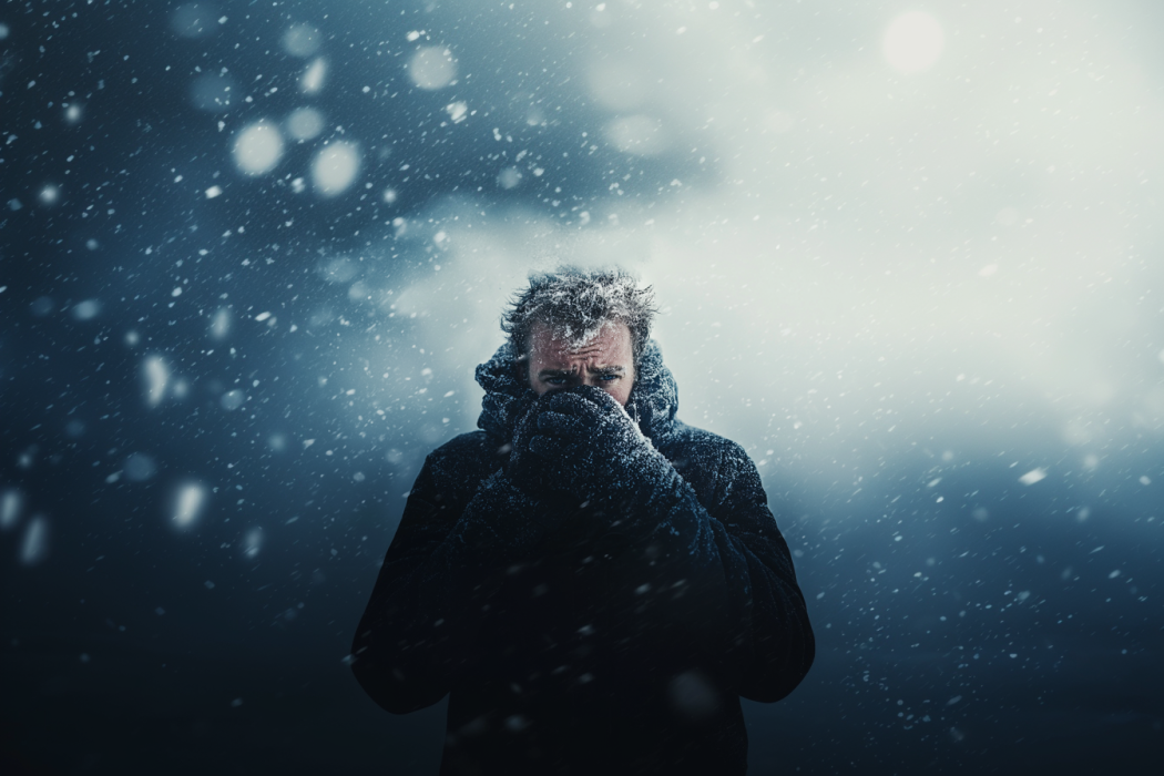 Ο άνεμος βρυχάται στα αυτιά του και τον χτυπάει από όλες τις κατευθύνσεις, καθιστώντας αδύνατο να δει περισσότερα από μερικά μέτρα μπροστά του. Κρατήθηκε από τον ακανόνιστο βράχο στο περβάζι, χρησιμοποιώντας κάθε ίχνος δύναμης για να μην παρασυρθεί.