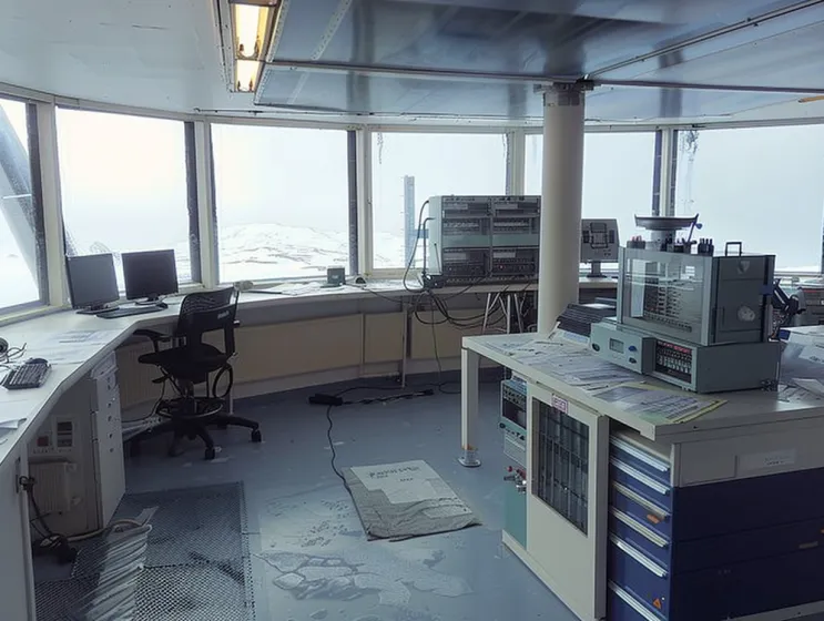 Στο εσωτερικό του μετεωρολογικού σταθμού, ο αέρας μύριζε σκουριά και φθορά. Το αμυδρό φως που διαπερνούσε τα παγωμένα παράθυρα αποκάλυπτε έναν χώρο που είχε ξεχαστεί εδώ και καιρό. Παλιά, σκουριασμένα μηχανήματα βρίσκονταν στους τοίχους, με τις κάποτε γυαλιστερές επιφάνειες τους να έχουν πλέον θαμπώσει από τα χρόνια της εγκατάλειψης.