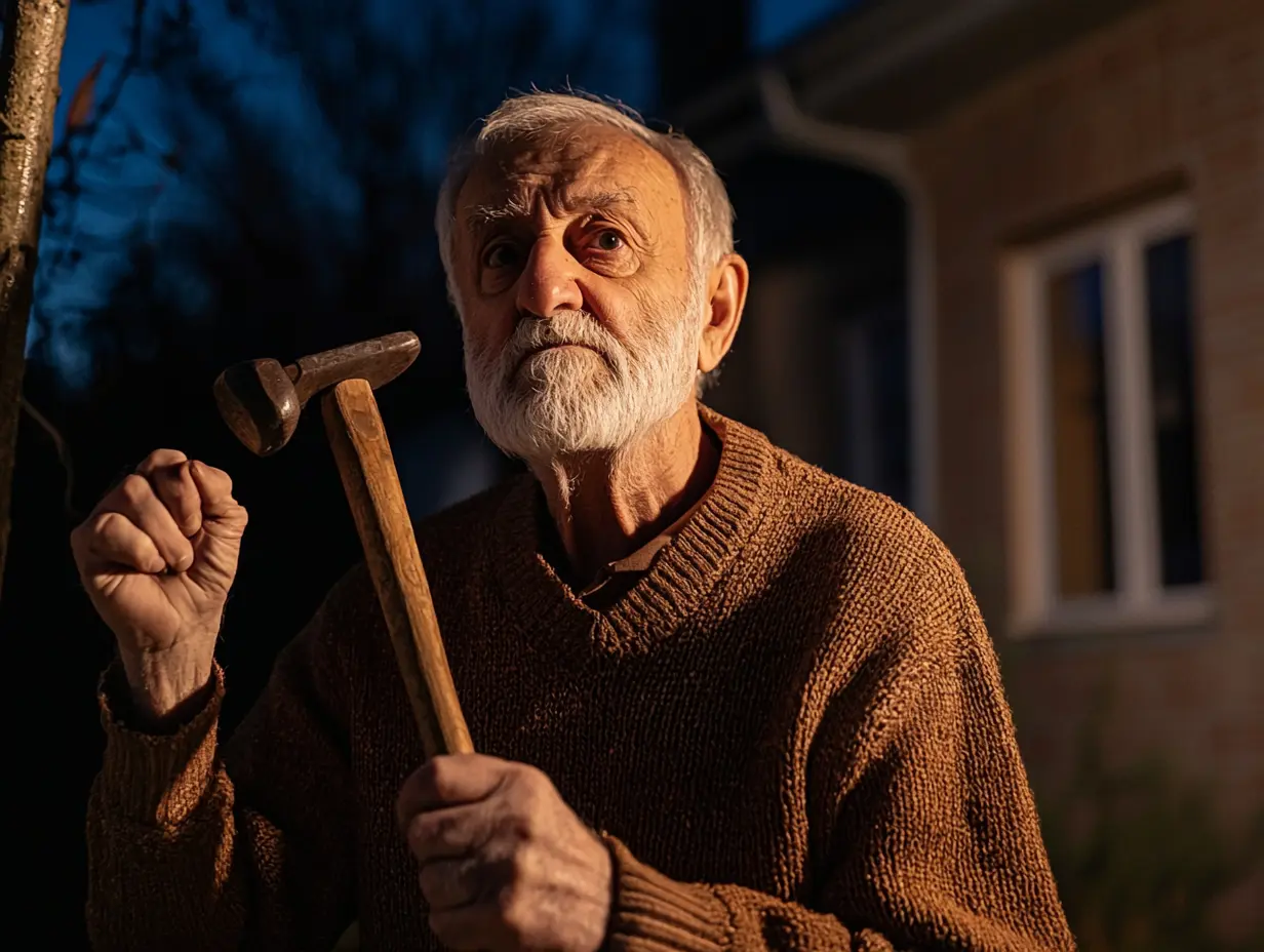 Βγαίνοντας έξω, το κρύο τον χτύπησε σαν συμπαγής τοίχος, βγάζοντας την ανάσα από τα πνευμόνια του. Ο άνεμος ούρλιαζε ανάμεσα στα δέντρα, μεταφέροντας μαζί του το απόκοσμο τρίξιμο των παγωμένων κλαδιών. Έσφιξε τη λαβή του από το σφυρί και άναψε τον φακό, σαρώνοντας την ακτίνα σε όλη την αυλή.