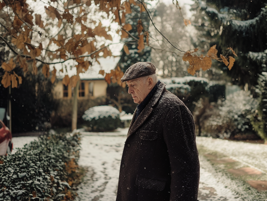 Το κρύο τον χτύπησε σαν γροθιά, ο αέρας έτριβε τα στρώματά του και εισχωρούσε στις αρθρώσεις του. Κάθε βήμα ήταν μια προσπάθεια, η αναπνοή του έβγαινε σε ομιχλώδεις εκρήξεις καθώς βάδιζε προς την πίσω αυλή.