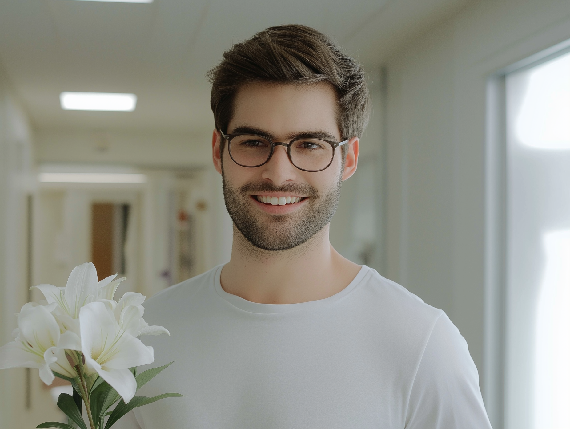 Το ανθοπωλείο απέναντι τύλιξε λευκά κρίνα και απαλό ροζ τριαντάφυλλα σε μαλακό χαρτομάντιλο. Ο Ίθαν φαντάστηκε το νυσταγμένο χαμόγελο της Λίνας όταν τα είδε. Πήρε το χρόνο του διασχίζοντας την επιστροφή, σταματώντας για να πάρει έναν καφέ από τη γωνιά του αυτόματου πωλητή, απολαμβάνοντας την παράξενη, αναζωογονητική ηρεμία μετά από ώρες ωμής έντασης.