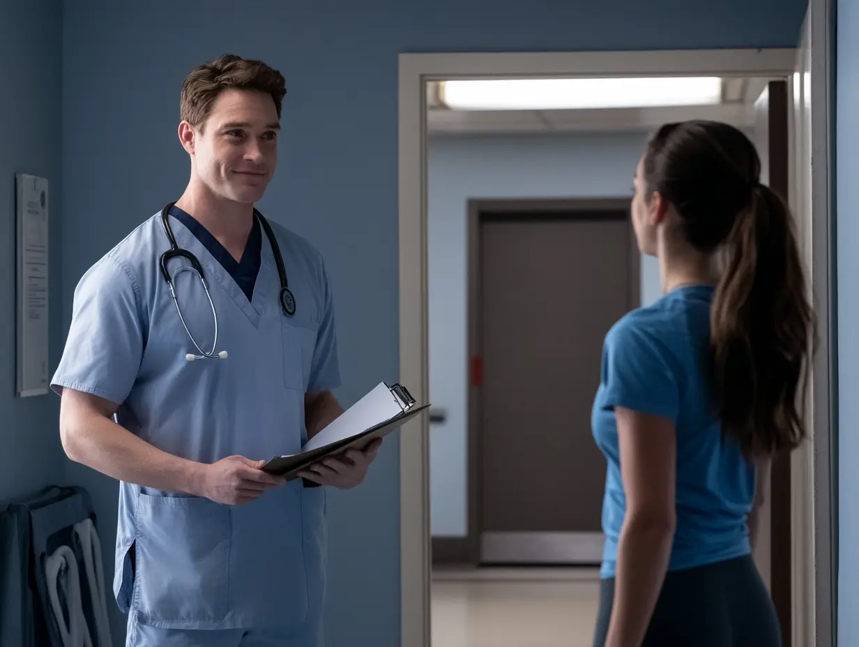 Όταν ακούστηκε το όνομά της, σήκωσε το κεφάλι της και είδε μια ψηλή νοσοκόμα με ποδιά να στέκεται στην πόρτα, με ένα πρόχειρο στο χέρι. “Ριντ;” ρώτησε. Εκείνη σηκώθηκε όρθια. “Εγώ είμαι.” Καθώς περπατούσαν, έριξε μια ματιά στον φάκελό της. “Αθλήτρια;” είπε. Η Μάγια έγνεψε. “Τρίαθλο”
