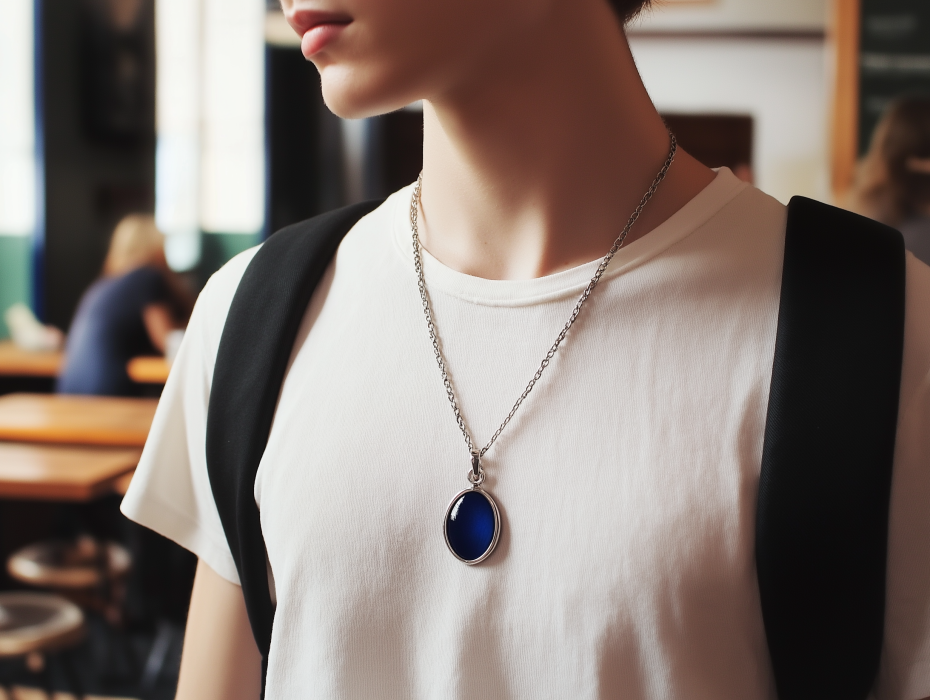 Όταν τελικά μπήκε μέσα, ψηλός και με φαρδείς ώμους, ο κόσμος έμοιαζε να σταματάει. Το περιδέραιο ακουμπούσε στο στήθος του, η μπλε πέτρα έπιανε το φως. Ο λαιμός της Μάρα σφίχτηκε, αλλά ανάγκασε τη Μάρα να χαμογελάσει. Πλησίασε, με επιφυλακτική περιέργεια στα μάτια του. “Θέλατε να μιλήσουμε για αυτό το κολιέ;” ρώτησε.