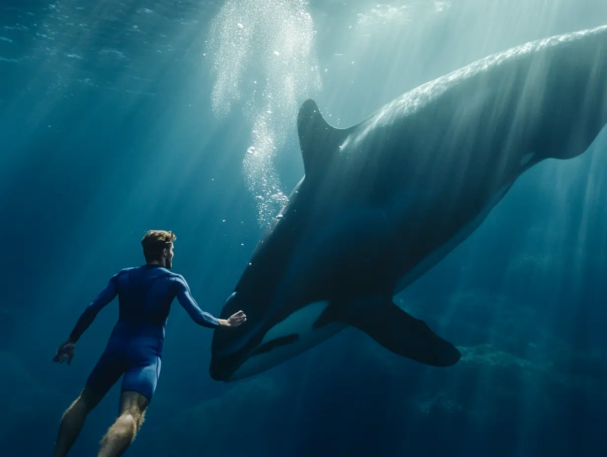 Στα μισά της διαδρομής προς τα πίσω, κοίταξε πίσω του. Η όρκα είχε γυρίσει και έκανε κύκλους σε απόσταση. Για μια στιγμή, κολύμπησε δίπλα του, με το ένα σκούρο μάτι να συναντά το δικό του. Δεν το ένιωσε σαν ευχαριστώ – απλά σαν επίγνωση. Ένα είδος κατανόησης.