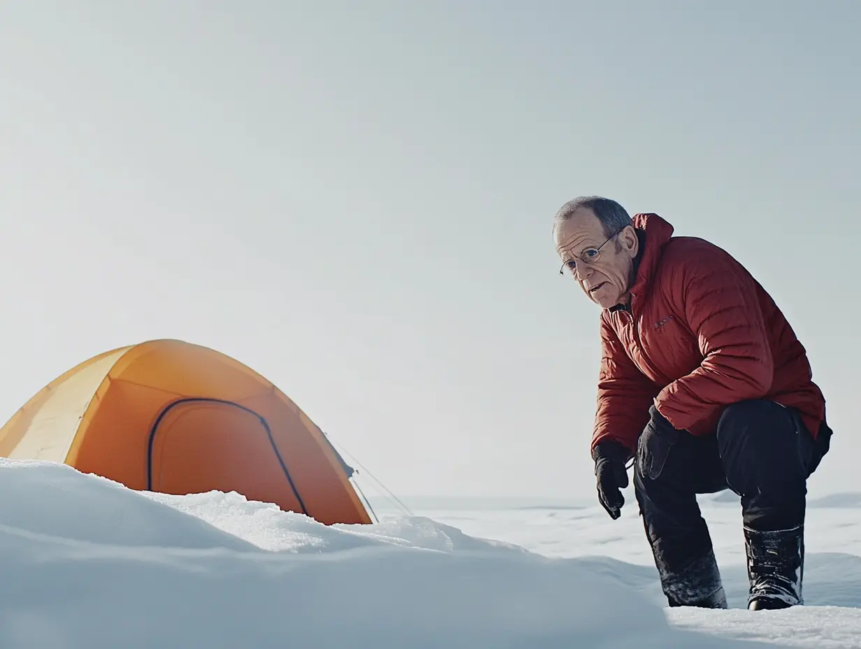 Κοίταξε πίσω στον καταυλισμό. Σκιές κινούνταν ανάμεσα στις σκηνές. Μέτρησε τουλάχιστον τρεις φιγούρες – ίσως και περισσότερες. Ο ένας κρατούσε κάτι μακρύ, πιθανόν ένα τουφέκι. Ο Κέιλεμπ έσκυψε πιο χαμηλά και κινήθηκε πίσω από ένα χιονισμένο ύψωμα.