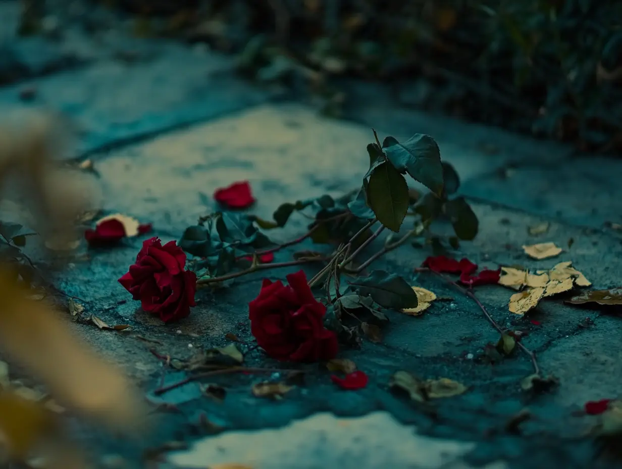 Από μια άλλη τριανταφυλλιά έλειπαν τα μισά άνθη. Τα άνθη βρίσκονταν τσακισμένα σε ένα αυλάκι από λάστιχο που διέσχιζε διαγώνια το παρτέρι. Τα χέρια του έτρεμαν ελαφρά καθώς γονάτιζε για να φτιάξει ό,τι μπορούσε. Η συμμετρία για την οποία είχε δουλέψει τόσο σκληρά – ξετυλίγονταν, μια παράκαμψη τη φορά.