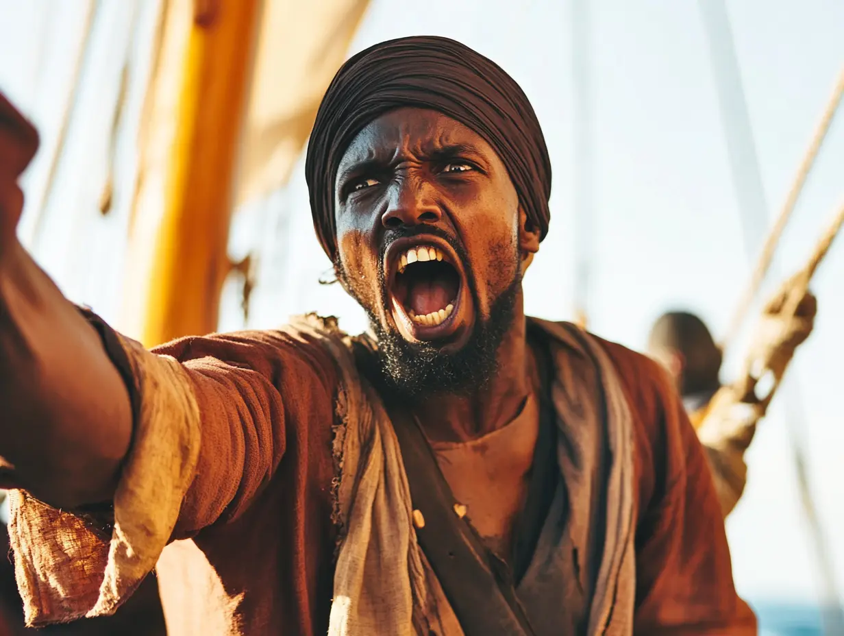 Ο ψηλός πειρατής πλησίασε, σπρώχνοντας τον Ίθαν στον πάγκο με ένα σταθερό χέρι στον ώμο. Ένας άλλος άντρας τράβηξε τον Λίαμ προς τα εμπρός, σέρνοντάς τον μακριά από τον τοίχο της καμπίνας. Ο Λίαμ σκόνταψε, η καρδιά του χτυπούσε δυνατά, οι λέξεις έπεσαν από το στόμα του πριν προλάβει να τις σταματήσει. “Σε παρακαλώ… είμαι απλά ένας ερευνητής, δεν έχω…”