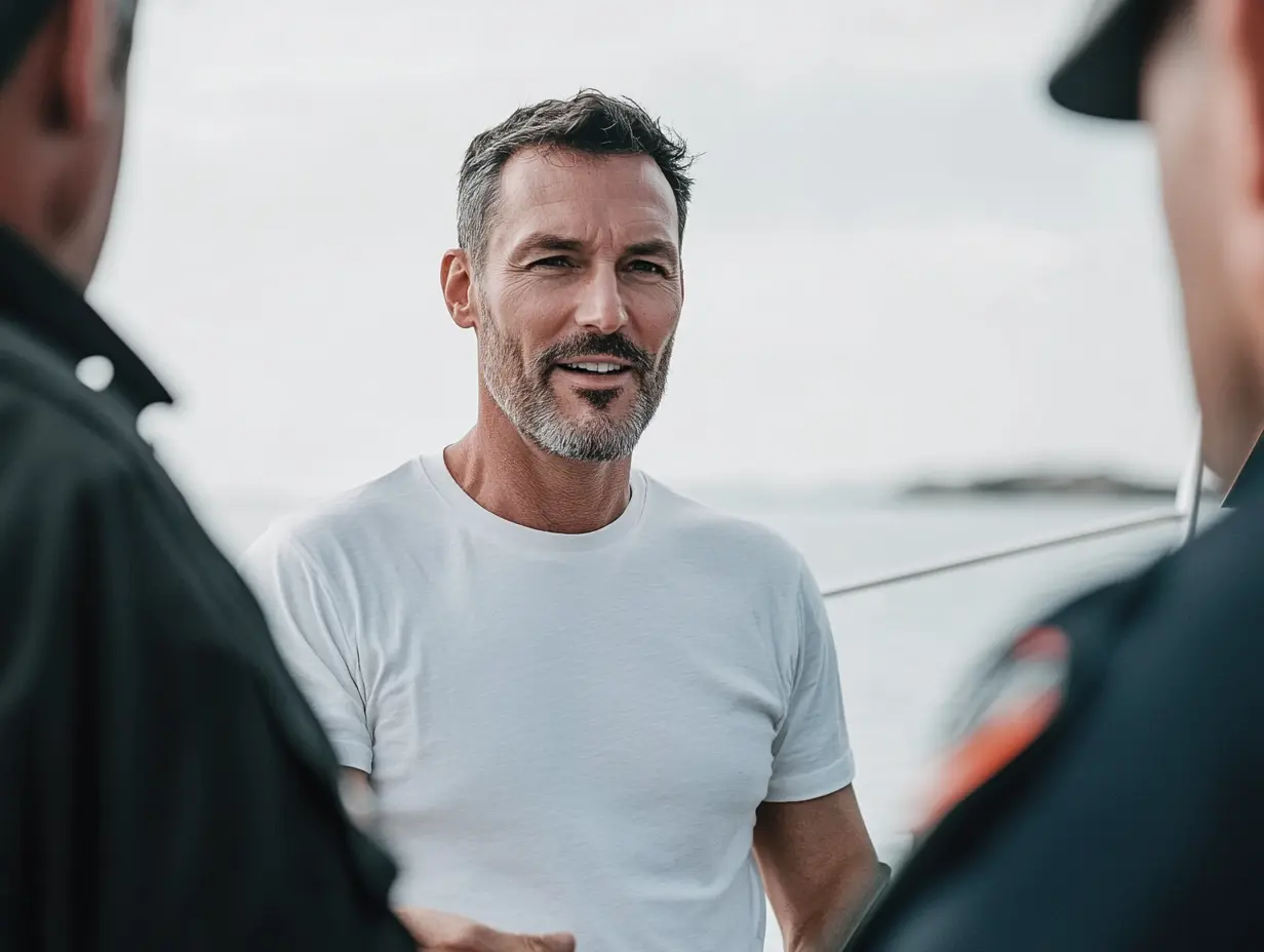Λίγα λεπτά αργότερα, και οι δύο άνδρες μεταφέρθηκαν στην ασφάλεια του κόφτη. Πίσω τους, το Aurora’s Wake κουνιόταν απαλά στα κύματα, με το σκισμένο πανί να ανεμίζει, σημαδεμένο αλλά ακόμα εν πλω. Τυλιγμένος σε μια κουβέρτα, ο Λίαμ στράφηκε προς τον Ίθαν, με φωνή χαμηλή αλλά σταθερή. “Κι εσύ με έσωσες” Ο Ίθαν εξέπνευσε, με το πιο αμυδρό χαμόγελο να τραβάει το στόμα του.