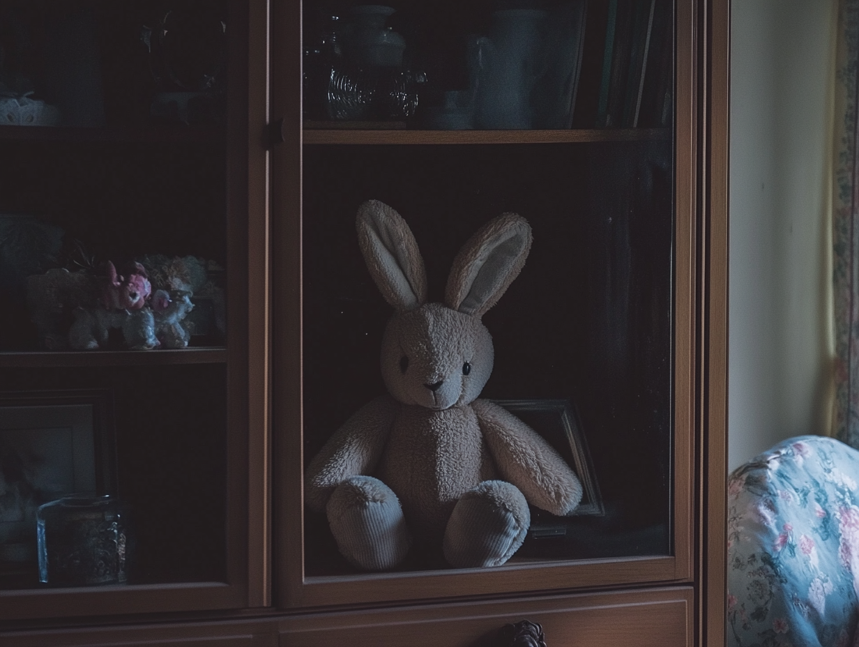 Περπάτησε αργά στο σαλόνι, σκανάροντας κάθε γωνιά, ψάχνοντας για κάτι -οτιδήποτε- που θα μπορούσε να ηρεμήσει λίγο τον σκύλο. Τότε το βλέμμα της προσγειώθηκε στο παλιό γυάλινο ντουλάπι. Μέσα, πίσω από μια σειρά μπιχλιμπίδια, καθόταν ένα ξεθωριασμένο λούτρινο κουνέλι. Ένα παιδικό παιχνίδι που είχε χρόνια να το αγγίξει.