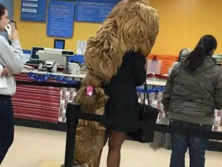 Έχουμε ήδη σταματήσει να σκεφτόμαστε πώς κατέληξε εκεί η ουρά και προχωράμε στην επόμενη εικόνα. Κρατηθείτε, γιατί η κυρία σε αυτή τη φωτογραφία φοράει κάτι πραγματικά απροσδόκητο, και μάλιστα ακριβώς στο πρόσωπό της!