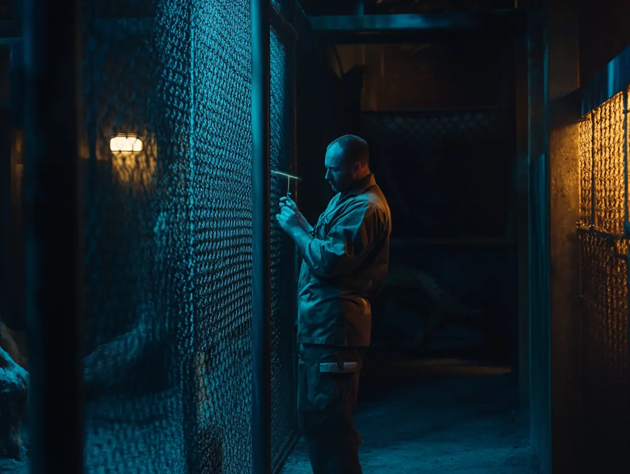 Η αντίδραση ήταν ακαριαία. Η Σίρα πετάχτηκε όρθια με ένα βρυχηθμό τόσο δυνατό που ταρακούνησε το παράθυρο. Σκόνη έσκασε από το έδαφος καθώς έκανε στροφή, με τα μάτια της να λάμπουν στο φως. Κάθε φύλακας πάγωσε. “Πίσω!” Φώναξε ο Ίθαν. “Όλοι πίσω!” Η Σίρα περπατούσε με ακανόνιστες κινήσεις, με την ουρά της να κουνιέται και την αναπνοή της να φουσκώνει.