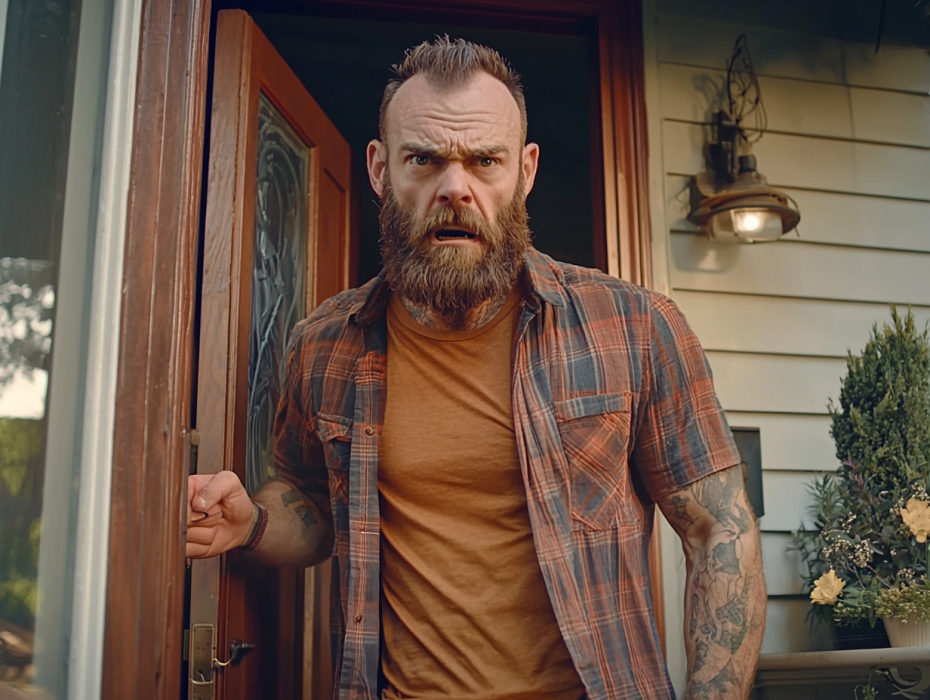 Λίγα δευτερόλεπτα αργότερα, η πόρτα άνοιξε και αποκάλυψε έναν ψηλό, ατημέλητο άντρα με μούσι και αυστηρή έκφραση. Και μόνο το μέγεθός του έκανε τον Σεμπάστιαν ανήσυχο. “Μπορώ να σας βοηθήσω;” ρώτησε ο άντρας, με τη φωνή του χαμηλή και τραχιά, μετρώντας τον Σεμπάστιαν.